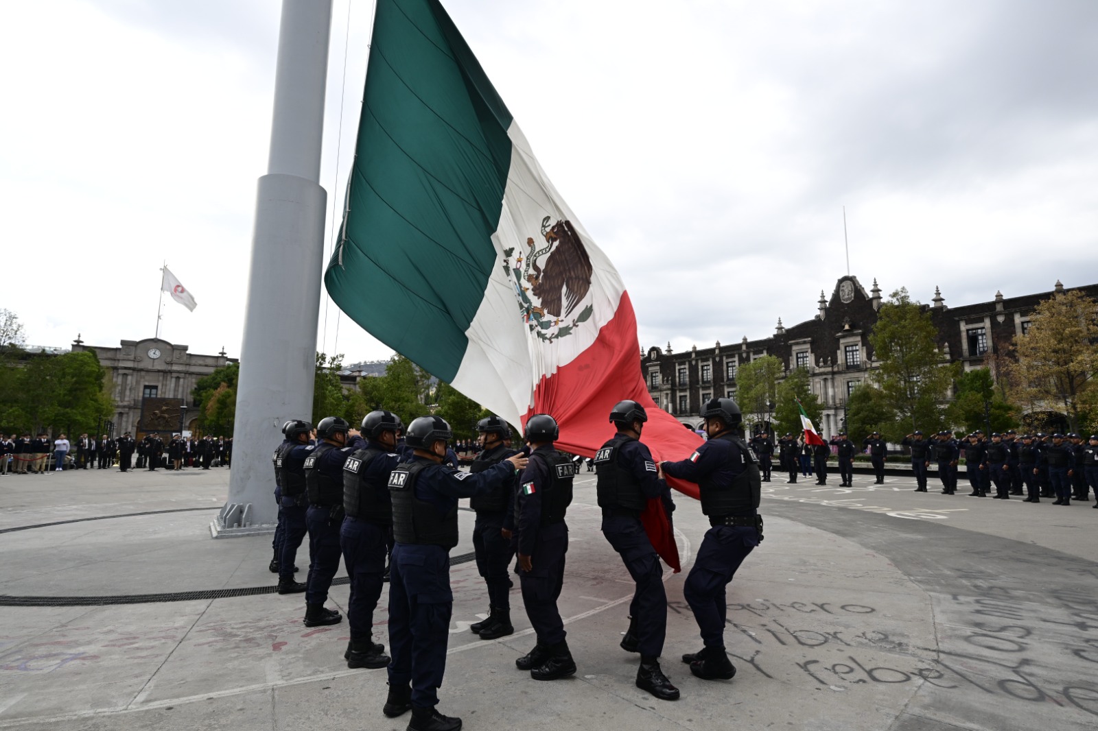 Al acto protocolario celebrado en la Plaza de los Mártires también asistieron personas servidoras públicas adscritas a la Coordinación General de Comunicación Social, área responsable de difundir el quehacer gubernamental del Gobierno que encabeza la Maestra Delfina Gómez Álvarez.