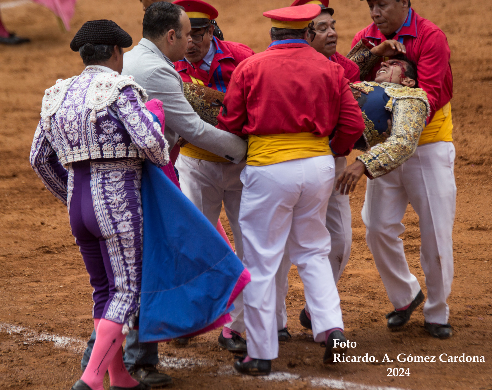Al tomar la muleta, el burel se lo echó los lomos el resultado fue un golpazo y de ahí a la enfermería.