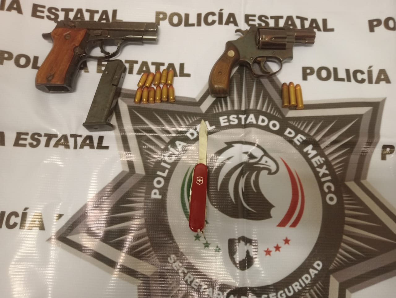 Zinacantepec, Estado de México, 13 de noviembre de 2024.- Derivado de una llamada de auxilio, elementos de la Secretaría de Seguridad del Estado de México (SSEM), detuvieron a un probable implicado en los delitos de violencia de género y portación de arma de fuego; en la acción, aseguraron una navaja, una pistola, un revolver y varios cartuchos útiles.