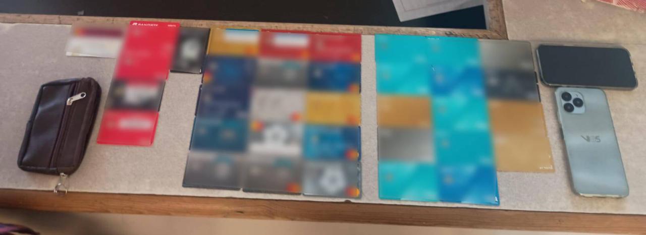 Una vez que los oficiales arribaron al inmueble, interceptaron a los sospechosos, quienes traían consigo 35 tarjetas de crédito y débito de diversos bancos, las cuales no lograron comprobar su legal posesión.