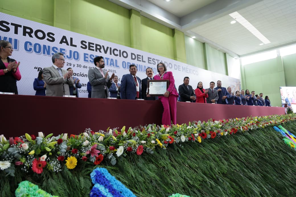 Durante la ceremonia, Martínez Reyes subrayó que el Consejo Estatal constituye un ejercicio de participación democrática en el que más de 105 mil maestras y maestros —representados por cerca de 5 mil delegados sindicales— intervienen de manera directa en la definición de las acciones sindicales y laborales.