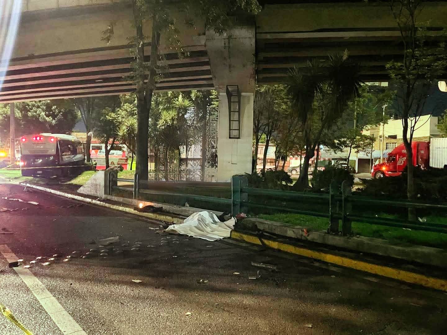 A varios metros detrás del autobús fue localizado el cuerpo sin vida de un hombre. Según información preliminar, la víctima habría sido arrollada por la unidad durante varios metros, lo que dejó el cuerpo en condiciones que impidieron su identificación inmediata.