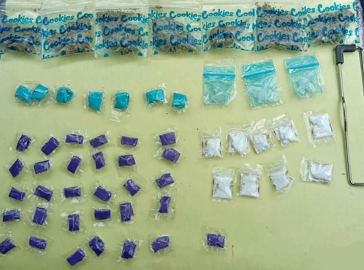 Además, siete bolsas resellables con la leyenda “cookies”, con hierba verde y seca con las características propias de la marihuana, con un peso aproximado de 70 gramos; también, nueve envoltorios más con polvo blanco, similar a la cocaína, siete con la misma sustancia, pero en forma sólida y 31 bolsas con envoltorios de color morado de aproximadamente un gramo cada una, con sustancia denominada cocaína en piedra.